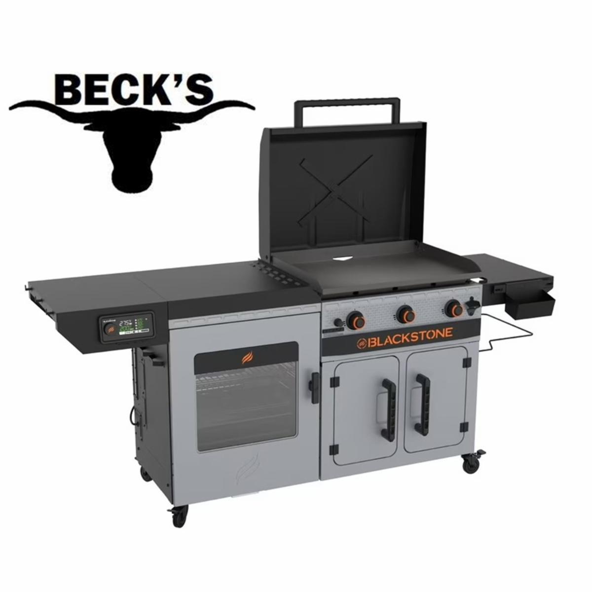 Grand Prize: A $1500 value! A Blackstone 28″ XL 3-in-1 Propane Griddle, Vertical Smoker Pellet Grill & Prep Cart Combo, PLUS 1/2 Hog from Beck’s Meats AND a Grilling Set