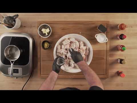 While grill is preheating, dry off chicken wings with a paper towel. Place wings in a large bowl and sprinkle with cornstarch, Traeger Chicken Rub and salt to taste. Mix to coat both sides of the chicken wings.