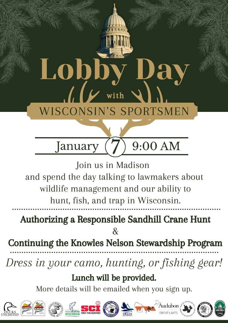 Wis. Waterfowl Assn. LOBBY DAY with WISCONSIN SPORTSMEN in Madison, WI. Join Us and Make your Voice Count. By RVL / December 15, 2025 Your opportunity to speak with lawmakers about hunting, fishing and trapping in Wisconsin If you are interested in participating, please click on the button below to sign up! Sign up for Lobby Day here Share This Email Share This Email Share This Email Wisconsin Waterfowl Association | PO Box 427 | Wales, WI 53183 US You may also like Wisconsin Waterfowl Association April 2026 Newsletter By RVL / April 4, 2026 Spring Is In The Air WWA MARCH 2026 NEWSLETTER By RVL / March 5, 2026 Wis. Waterfowl Assn. February 2026 Newsletter By RVL / February 7, 2026 Wisconsin Waterfowl Assn. 25th Annual Green Bay Chapter Banquet March 19th By RVL / January 23, 2026 January 2026 Newsletter 2025 Was Another Great Year By RVL / January 2, 2026 Post navigation Previous NSSF Launches New First Shots Introductory Course on SuppressorsNext Hunters’ Harvest Donations are Feeding Millions
