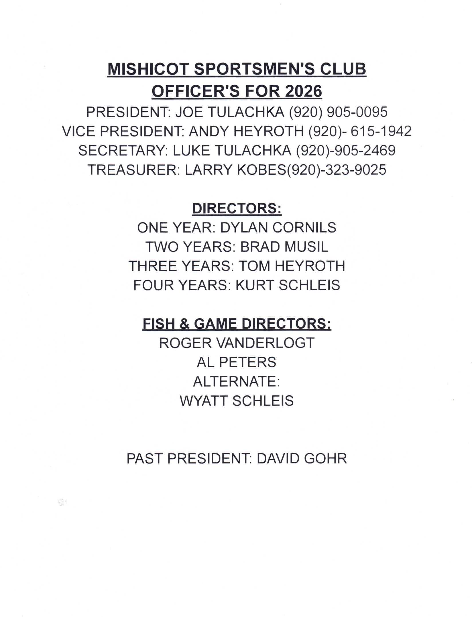 Mishicot Sportsmen's Club News MISHICOT SPORTSMEN’S CLUB INFORMATION FOR 2026 By RVL / December 30, 2025 You may also like Mishicot Sportsmen’s Club Brat Fry and Meat Raffle April 11th, 2026 By RVL / April 4, 2026 MISHICOT SPORTSMEN’S CLUB CHANGE OF MEETING DATE By RVL / December 19, 2024 Ice Fishing Derby at Mishicot Sportsmen’s Club coming soon! By RVL / December 9, 2024 2025 Mishicot Sportsmaen’s Club Officers and Directors By RVL / December 5, 2024 Post navigation Previous Minnesota Governor Resorts to Executive Power After Losing Legislative SupportNext NSSF Praises Indiana Court Decision to End City of Gary Lawsuit