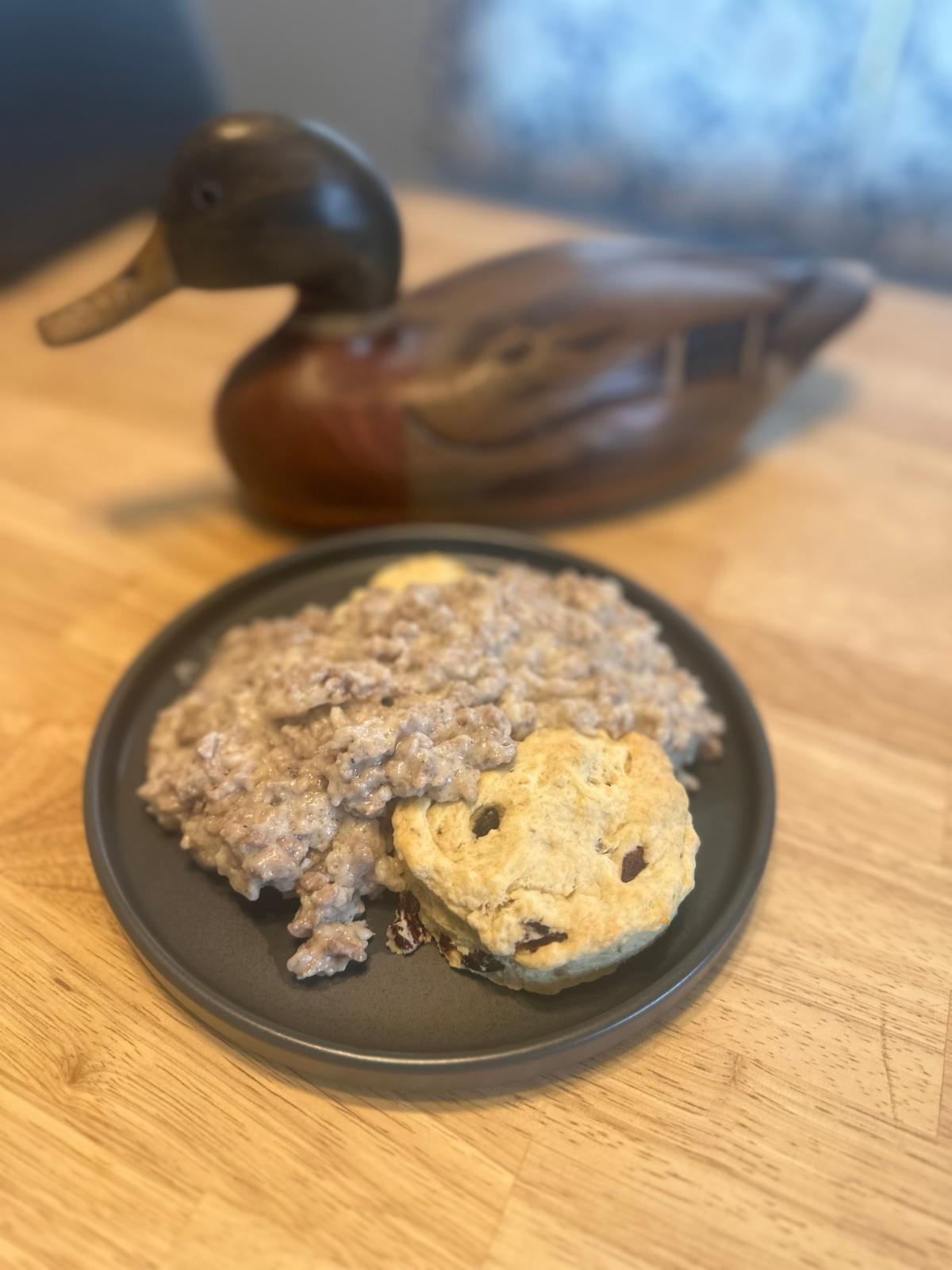 Waterfowl Sage Sausage Gravy and Cranberry Biscuits