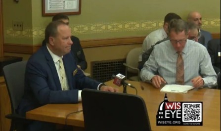 | Pictured above, WWA Executive Director Brad Heidel and Vice President Todd Schaller testify at the State Capitol in favor of legislation to bring a responsible sandhill crane hunt to Wisconsin.