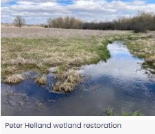| The Wisconsin Waterfowl Association, in partnership with the Wisconsin DNR, restored approximately 125 acres of wetland this past winter within the Peter Helland State Wildlife Area. The project included a 1,000-foot ditch fill, four ditch plugs, installation of a water control structure, and construction of half a dozen shallow eyebrow berms and associated scrapes. |